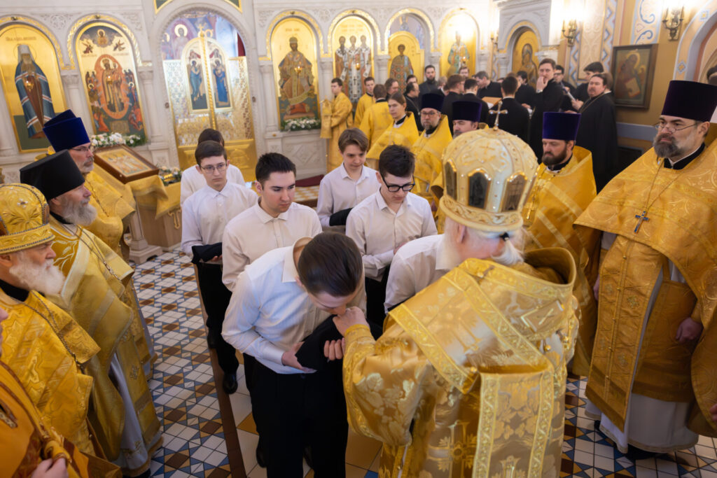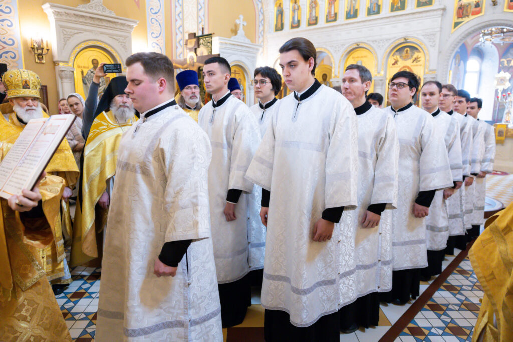 Проповедь по запричастном стихе произнес студент 4-го курса Иван Крымихин. За богослужением пел хор Коломенской духовной семинарии под управлением Николая Булгакова. По заамвонной молитве была совершена хиротесия во чтецов студентов выпускного курса КДС. Затем владыка Павел обратился к собравшимся с архипастырским словом. Студенты 1-го курса получили в этот день благословение Его Высокопреосвященства на ношение подрясников.