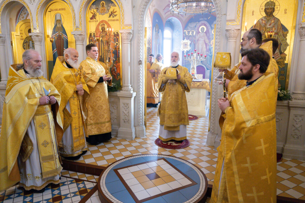 Божественную литургию в сам день праздника совершил Патриарший наместник Московской митрополии митрополит Крутицкий и Коломенский Павел. Ему сослужили секретарь Коломенского епархиального управления иерей Андрей Згонников, ректор Коломенской духовной семинарии протоиерей Вадим Суворов, игумен Старо-Голутвина Богоявленского мужского монастыря Варлаам (Горбунов), духовник семинарии протоиерей Александр Хмылов, настоятель Трёхсвятительского храма, первый проректор КДС иерей Василий Казинов, преподаватели и гости семинарии в священном сане.