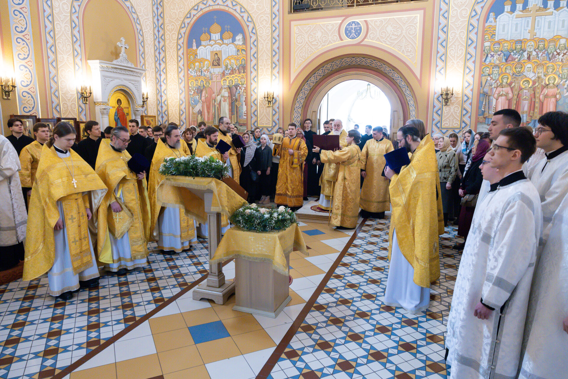 После богослужения в Актовом зале семинарии прошла официальная часть праздника.